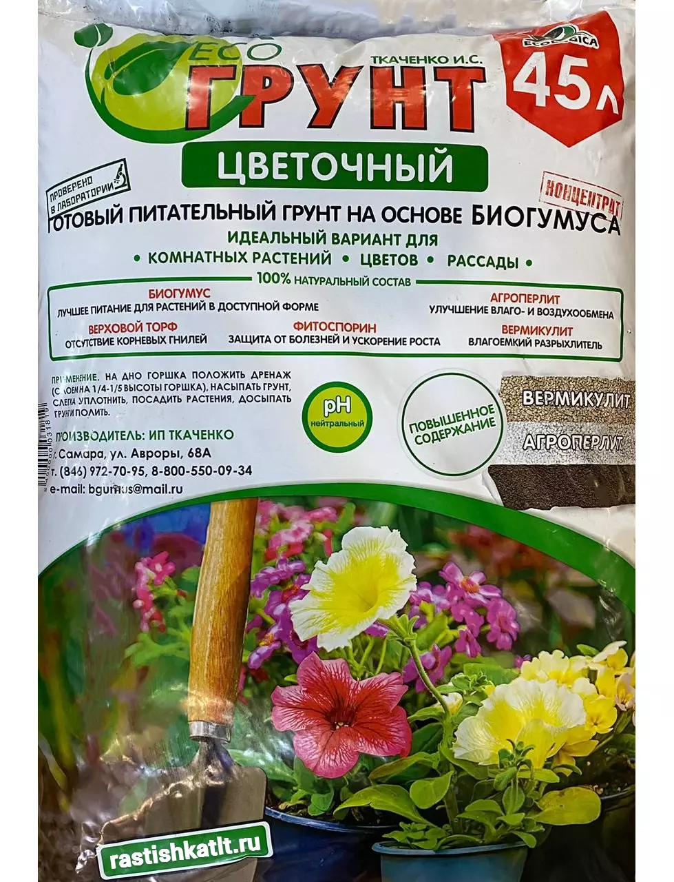 Грунт ЦВЕТОЧНЫЙ ЭКОгрунт - это универсальный готовый питательный грунт для растений на основе торфа и биогумуса с повышенным содержанием вермикулита и агроперлита. Является идеальным вариантом для комнатных растений, цветов, "зимнего сада", рассады