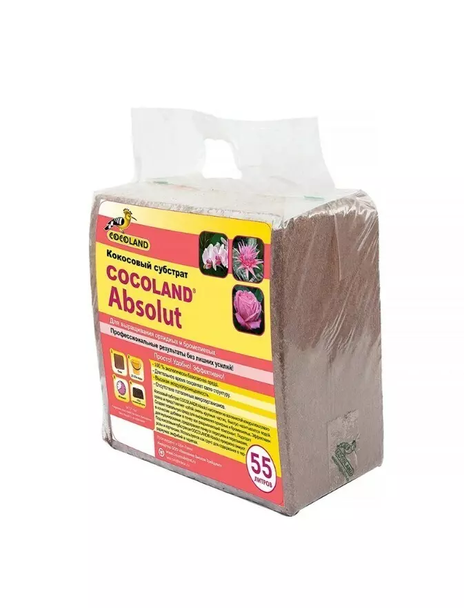 Основная информация Кокосовый субстрат «Cocoland Absolut» — натуральный материал, при помощи которого можно решить большое количество задач. Субстрат экологичен, он состоит исключительно из кожуры кокосового ореха. Cocoland Absolut содержит крупно порубленную кожуру (так называемые чипсы), а также резаное волокно и очесы волокна. Субстрат имеет рыхлую структуру. Это гарантирует отличную воздухопроницаемость, а, значит, и правильный воздухообмен в прикорневом слое. Еще одна особенность этого субстрата — способность впитывать большое количество влаги. Растения постепенно забирают необходимое им количество воды, что позволяет получить прекрасный результат при сокращении количества поливов. Кислотность субстрата нейтральная. Семян сорняков, возбудителей заболеваний растений и других неприятных сюрпризов этот субстрат не содержит, так что растения будут в полной безопасности. Субстрат продается в брикетах, которые размачивают в воде перед использованием.