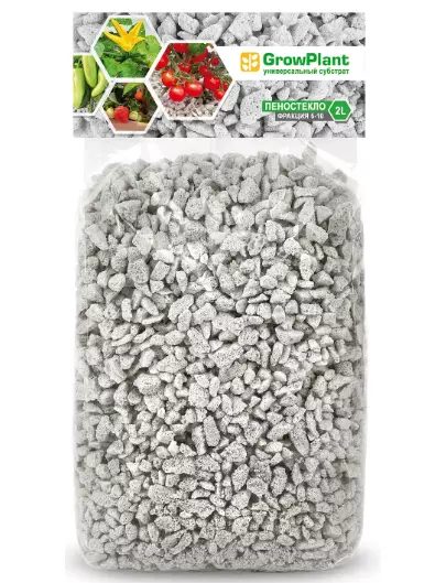 Основная информация Cубстрат GrowPlant 5 литров (садовая прозрачная упаковка) пеностекольный субстрат фракции 5-10 используется для горшков в гидропонике, как субстрат для выращивания растений с небольшой корневой системой, ингредиент для приготовления субстратных смесей в смеси с торфом или кокосовым волокном, мульчирование горшечных растений, дренаж для рассадных стаканов, для выращивания микрозелени, для орхидей, для СитиФермеров, для аэрации почвы и как самостоятельный субстрат.