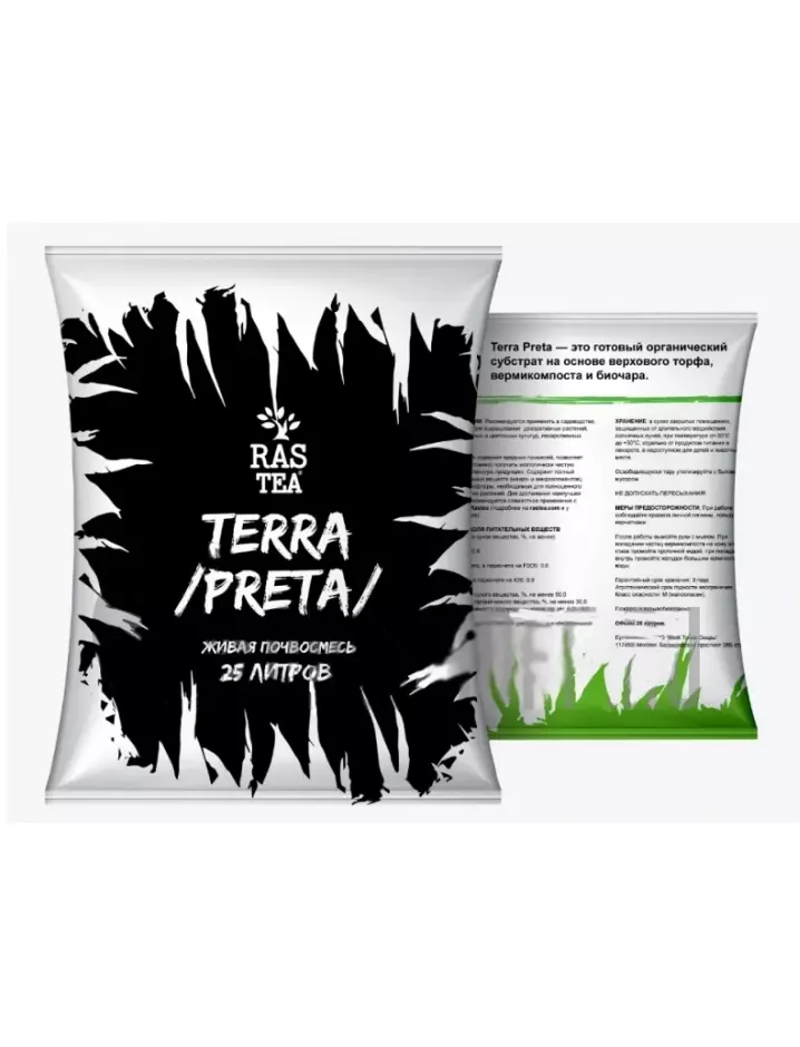 В составе живой почвосмеси Terra Preta смесь верхового торфа, вермикомпоста и биочара.