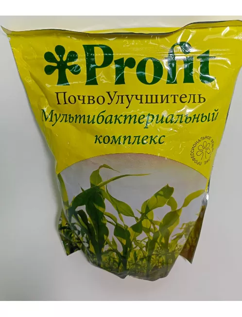 Profit ПочвоУлучшитель — это биопрепарат, содержащий композицию штаммов азотфиксирующих, фосфатмобилизирующих и калиймобилизирующих бактерий на цеолите. Он способствует полноценному питанию и развитию растений, увеличивает их обеспеченность основными элементами питания, подавляет развитие возбудителей заболеваний в почве и стимулирует жизнедеятельность полезных микроорганизмов.