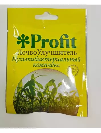 Profit ПочвоУлучшитель — это биопрепарат, содержащий композицию штаммов азотфиксирующих, фосфатмобилизирующих и калиймобилизирующих бактерий на цеолите. Он способствует полноценному питанию и развитию растений, увеличивает их обеспеченность основными элементами питания, подавляет развитие возбудителей заболеваний в почве и стимулирует жизнедеятельность полезных микроорганизмов.
