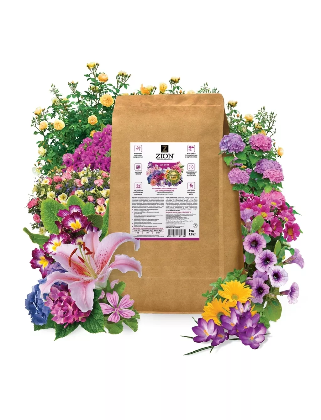 Ионитный питательный субстрат ЦИОН (ZION) "Для цветов" обеспечивает интенсивный рост растений, развитие сильной корневой системы.