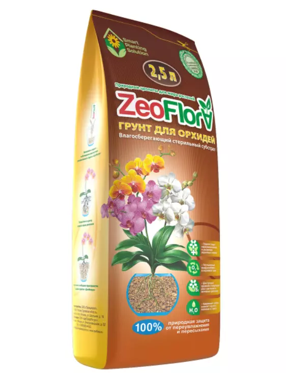 Влагосберегающий грунт ZeoFlora («ЦеоФлора») для Орхидей – стерильный, пористый, влагоемкий грунт для орхидей на основе природного цеолитсодержащего минерала. Он обеспечивает оптимальную аэрацию корней и запас необходимого количества воды без их переувлажнения.