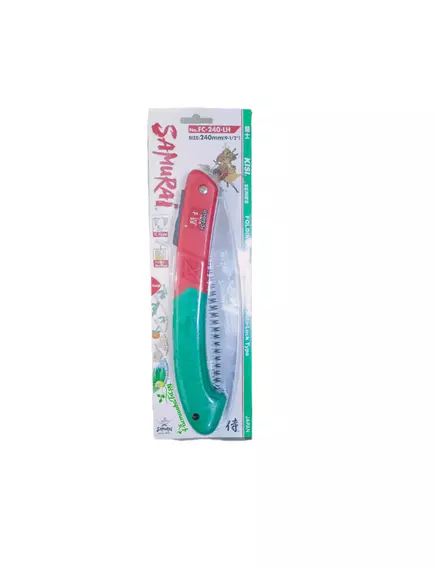 Пила складная с фиксатором изогнутое полотно SAMURAI FA-240-LH используется для распила сухой древесины и некрупных деревьев, удаления с кустарников и деревьев ветвей, в т.ч для деликатных работ. Она пригодится в походе, на рыбалке, для садовых работ. Закаленные током зубья прошли трехстороннюю заточку, что обеспечивает качественные и легкий рез, как в прямом, так и в обратном направлении.