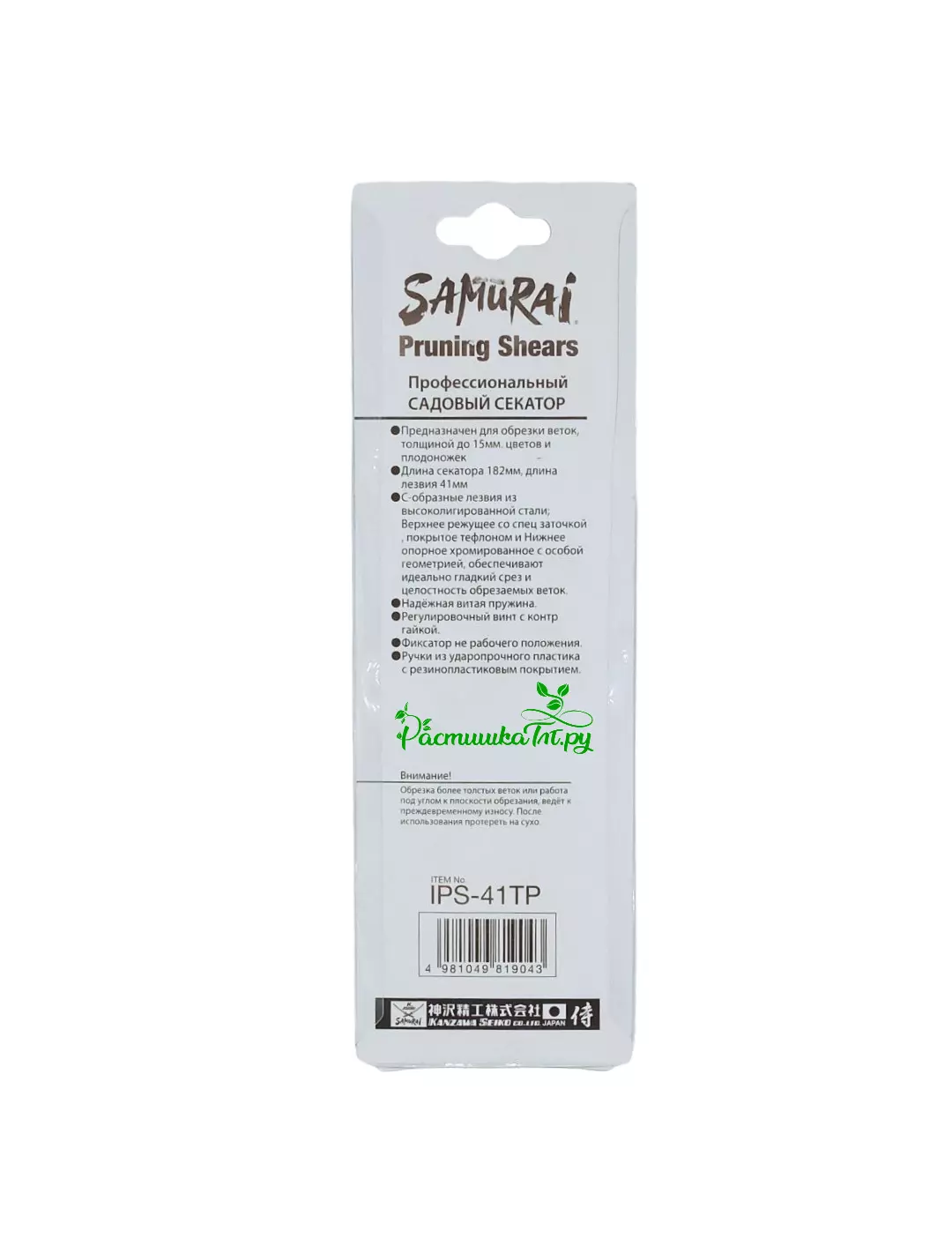 Секатор SAMURAI IPS-41TP с тефлоновым лезвием для обрезки веток L=182 мм