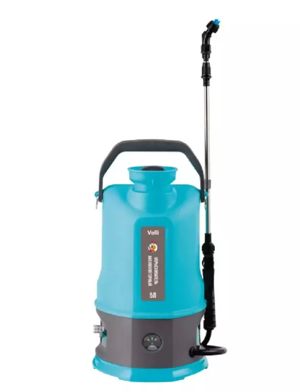 Опрыскиватель садовый аккумуляторый Velli 5л равномерно наносит воду и химические препараты на растения. Используется в садоводстве для борьбы с вредителями и заболеваниями растений, полива растений и опрыскивания. Удобные ремни уменьшают нагрузку на спину за счет регулируемых плечевых и ранцевых ремней. Полностью герметичен и устойчив к кислотной и щелочной среде. Легко заряжается. Подойдет в садовый инвентарь любителям дачи.Режимы распыления: веер, туман, струя.