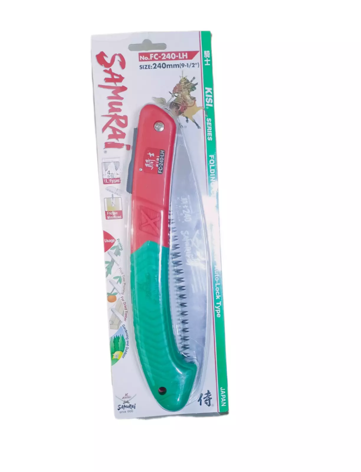 Пила складная с фиксатором изогнутое полотно SAMURAI FA-240-LH используется для распила сухой древесины и некрупных деревьев, удаления с кустарников и деревьев ветвей, в т.ч для деликатных работ. Она пригодится в походе, на рыбалке, для садовых работ. Закаленные током зубья прошли трехстороннюю заточку, что обеспечивает качественные и легкий рез, как в прямом, так и в обратном направлении.