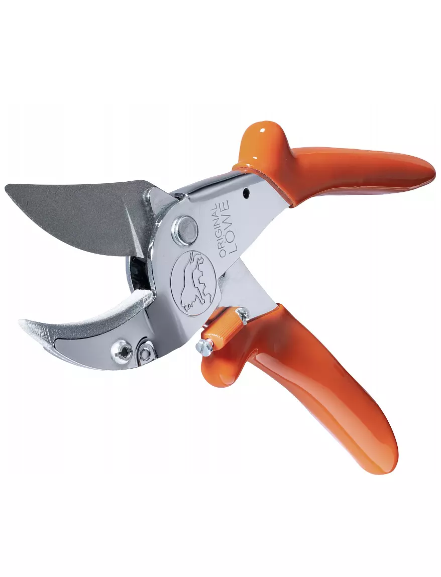Секатор LOWE 10 с лезвием, расположенным не по центру наковаленки, обеспечивает более точный и аккуратный срез близко к стеблю растения.