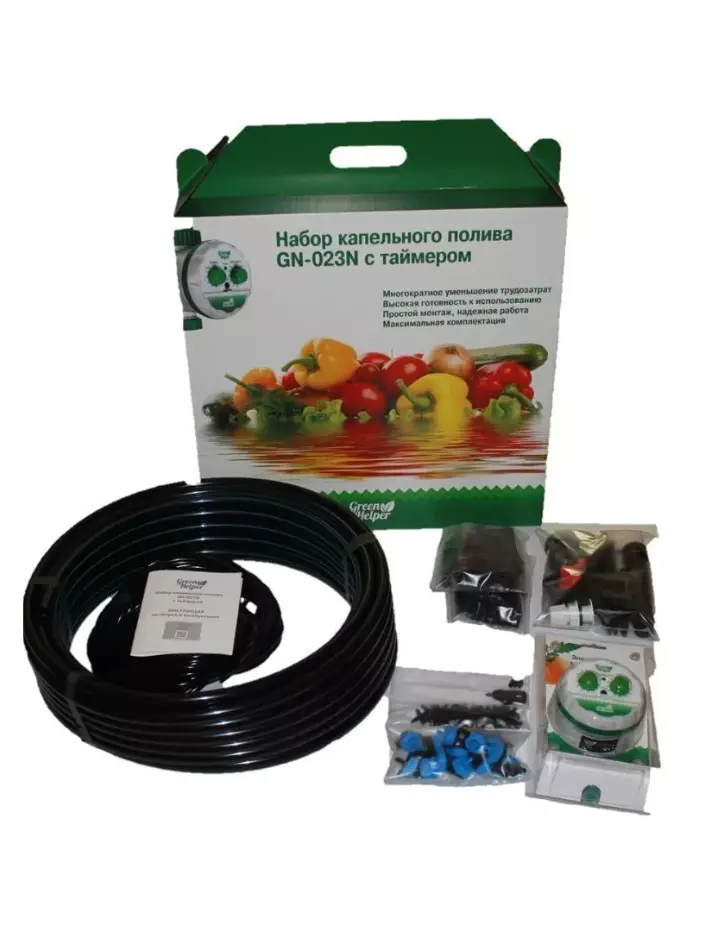 Green Helper набор для капельного полива. Максимальное давление 6 бар. Максимальное количество растений 64. Забор воды от водопровода или емкости. С таймером.