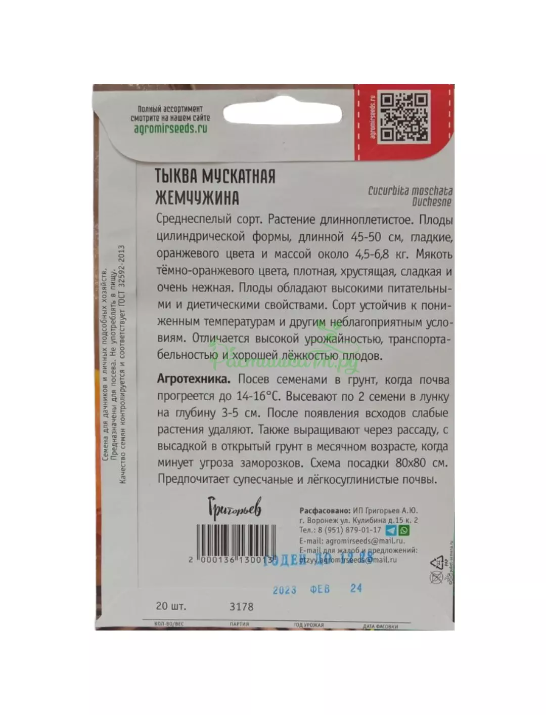 Сорт среднепоздний. Растение длинноплетистое. Плод цилиндрический, длинной 45-50 см, гладкий, оранжевого цвета, массой 4,5-6,8 кг. Мякоть темно-оранжевая, плотная, хрустящая, сладкая, очень нежная. Питательные и диетические свойства высокие. Сорт устойчив к пониженным температурам и другим неблагоприятным условиям. Отличается высокой урожайностью, транспортабельностью, хорошей легкостью плодов.