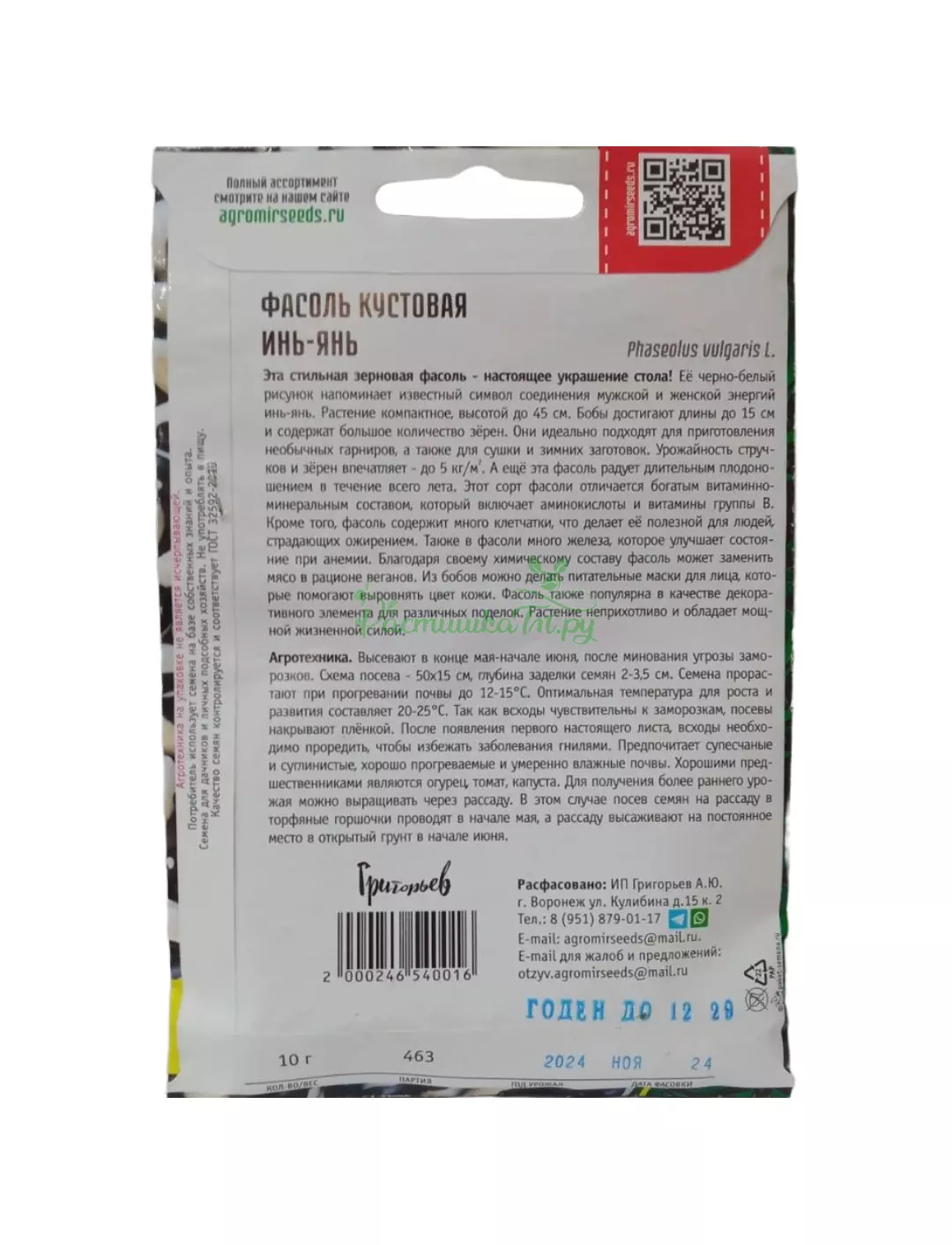 Растение компактное, высотой до 45 см. Бобы достигают длины до 15 см и содержат большое количество зёрен. Они идеально подходят для приготовления необычных гарниров, а также для сушки и зимних заготовок. Урожайность стручков и зёрен впечатляет - до 5 кг/м². А ещё эта фасоль радует длительным плодоношением в течение всего лета. Этот сорт фасоли отличается богатым витаминно-минеральным составом, который включает аминокислоты и витамины группы B. Кроме того, фасоль содержит много клетчатки, что делает её полезной для людей, страдающих ожирением. Также в фасоли много железа, которое улучшает состояние при анемии. Благодаря своему химическому составу фасоль может заменить мясо в рационе.