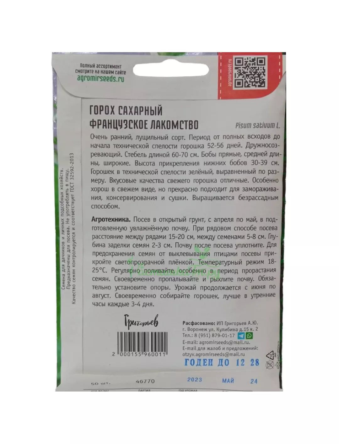 Очень ранний, лущильный сорт. Период от полных всходов до начала технической спелости горошка 52-56 дней. Дружносозревающий. Стебель длиной 60-70 см. Бобы прямые, средней длины, широкие. Высота прикрепления нижних бобов 30-39 см. Горошек в технической спелости зелёный, выравненный по размеру. Вкусовые качества свежего горошка отличные. Особенно хорош в свежем виде, но прекрасно подходит для замораживания, консервирования и сушки.