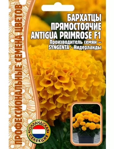 Бархатцы серии ANTIGUA - ЛИДЕР среди производственных гибридов прямостоячих бархатцев. Отличается высокой выравненностью габитуса и возможностью выращивания при плотных посевах. Очень крупные (до 15 см.), густомахровые цветки насыщенного цвета будут являться основой любого яркого цветника, бордюра или клумбы. Образует компактный кустик, высотой до 25 см, имеющий по одному цветоносу в рассаде и по 4-5 в открытом грунте. Предпочитает солнечные места. Прекрасно сочетается с любыми цветами и будет отлично смотреться в садовых контейнерах или вазонах. Устойчив к непогоде.