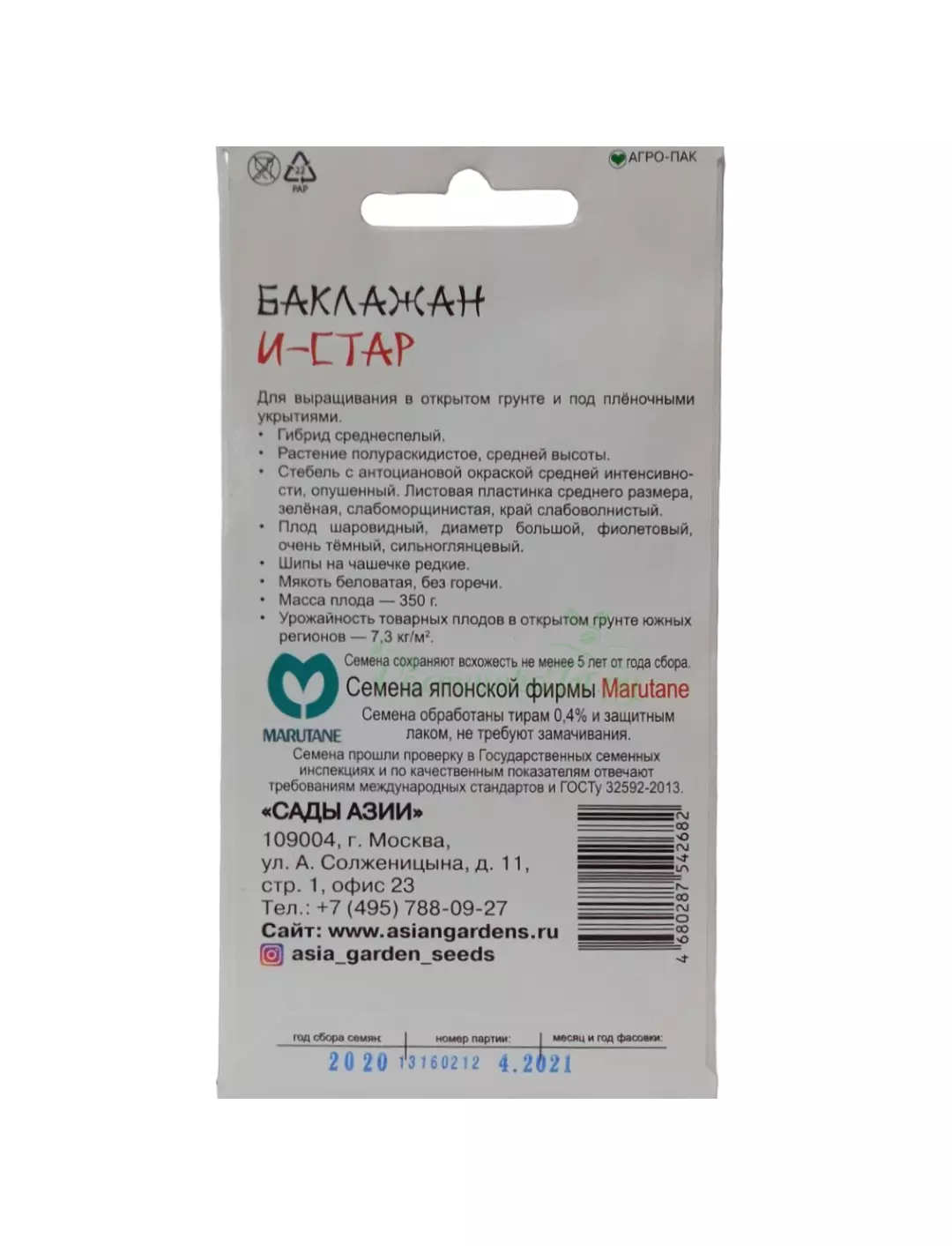Данный гибрид является среднеспелым, полураскидистым растением средней высоты. Плоды шаровидной формы, фиолетового цвета, с сильным глянцевым блеском. Размер плода 20-25 см в диаметре, масса - 350 грамм. Мякоть белая, без горечи, что делает данный гибрид идеальным для приготовления различных блюд. Урожайность составляет 7,3 килограмм на квадратный метр в открытом грунте. Баклажаны не горчат, вымачивать перед готовкой не стоит.