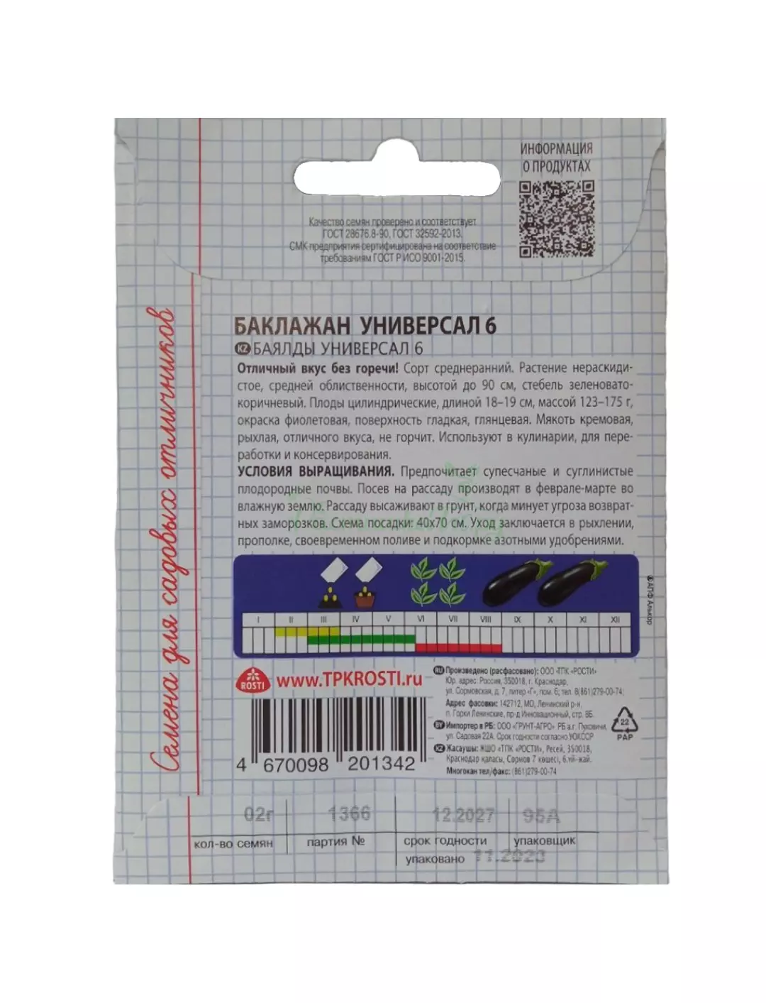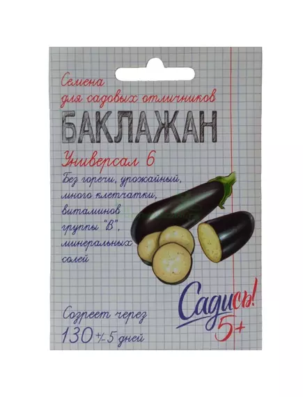 Среднеранний. Растение нераскидистое, высотой до 90 см. Плод цилиндрический, длиной до 20 см, диаметром до 6 см. Окраска фиолетовая, поверхность гладкая, глянцевая. Мякоть плода кремовая, рыхлая, без горечи, с нежным вкусом. Масса плода 123-175 г. Рекомендуется для пленочных укрытий, теплиц, открытого грунта.
