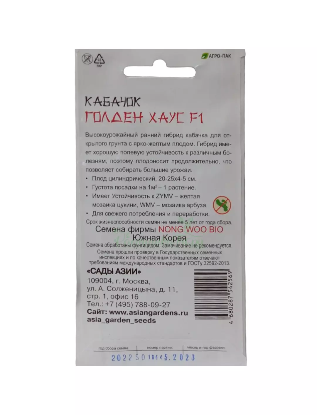 Высокоурожайный, раннеспелый гибрид кабачков для открытого грунта, с ярко-жёлтыми плодами. Этот овощ обладает хорошей полевой устойчивостью к различным заболеваниям, в связи с чем, плодоносит продолжительное время, что способствует получению высоких урожаев. Плоды имеют цилиндрическую форму, размером 20-25 х 4-5 сантиметров. На 1 кв.м. рекомендуется высаживать 1 растение. Кабачок устойчив к вирусам ZYMV (желтая мозаика цукини) и WMV (мозаика арбуза). Можно употреблять в свежем виде и для консервации