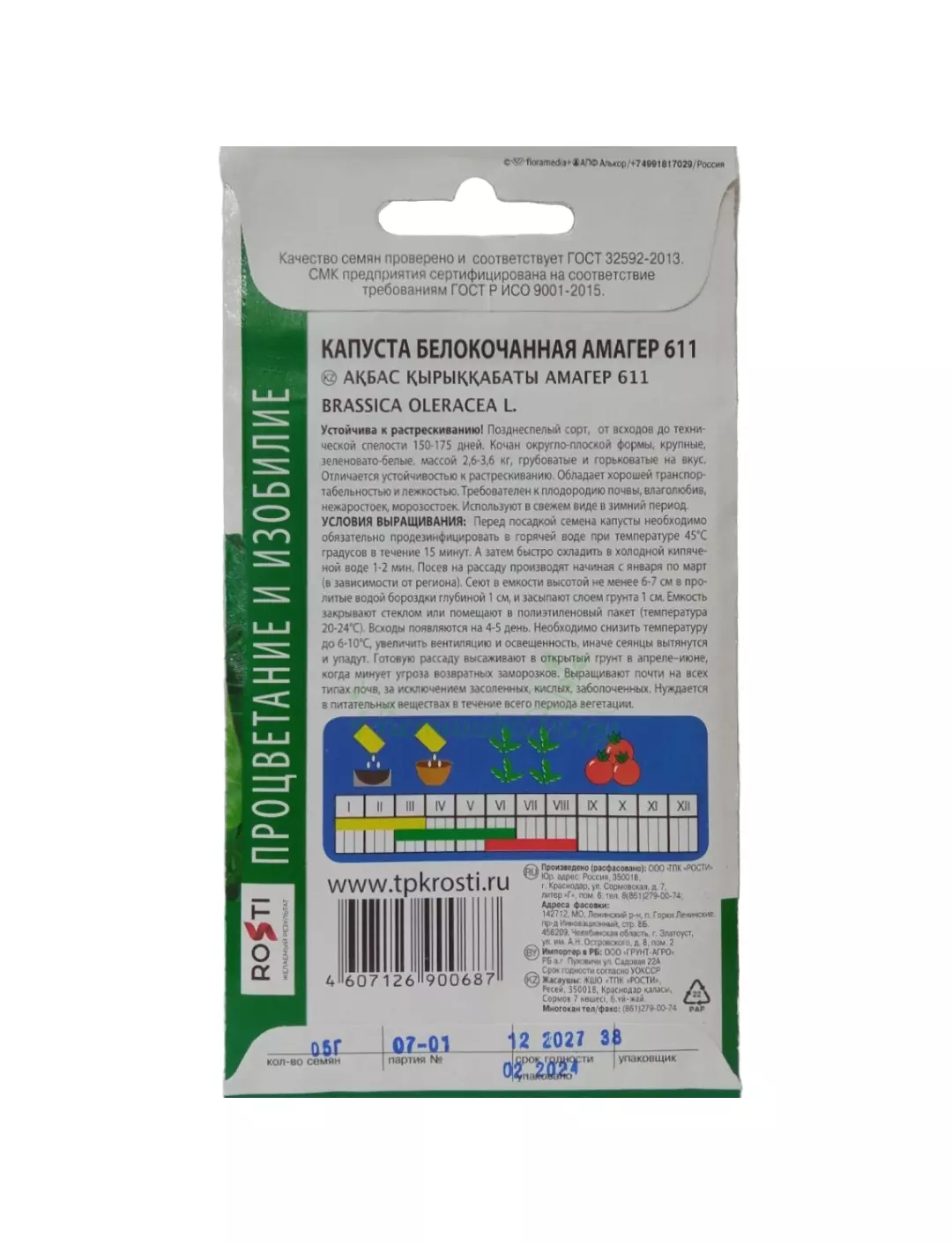 Позднеспелый (150-175 дней) гибрид. Кочан округлый, выровненный. Масса кочана 2-4,5 кг. Розетка листьев 45-55 см, высотой 30-34 см. Отличается высоким содержанием сахаров, аскорбиновой кислоты, отсутствием горечи, транспортабельностью и высокой лежкостью (6-7 месяцев). Рекомендуется для потребления в свежем виде, квашения и длительного хранения