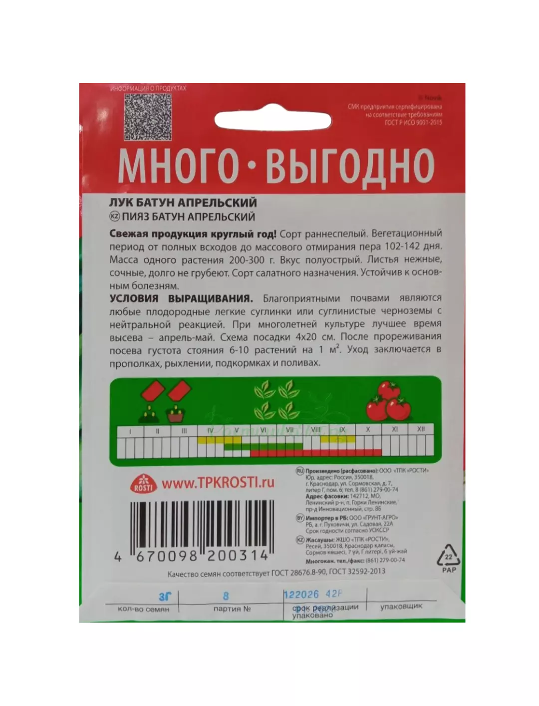 Сорт раннеспелый. Вегетационный период от полных всходов до массового отмирания пера 102-142 дня. Масса одного растения 200-300 г. Вкус полуострый. Листья нежные, сочные, долго не грубеют. Сорт салатного назначения. Устойчив к основным болезням