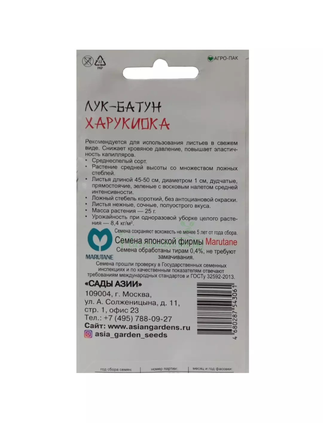 Среднеспелый сорт. Растение средней высоты со множеством ложных стеблей. Листья длиной 45-50 см, диаметром 1 см, дудчатые, прямостоячие, зеленые с восковым налетом средней интенсивности. Ложный стебель короткий, без антоциановой окраски. Листья нежные, сочные, полуострого вкуса. Масса растения - 25 г.