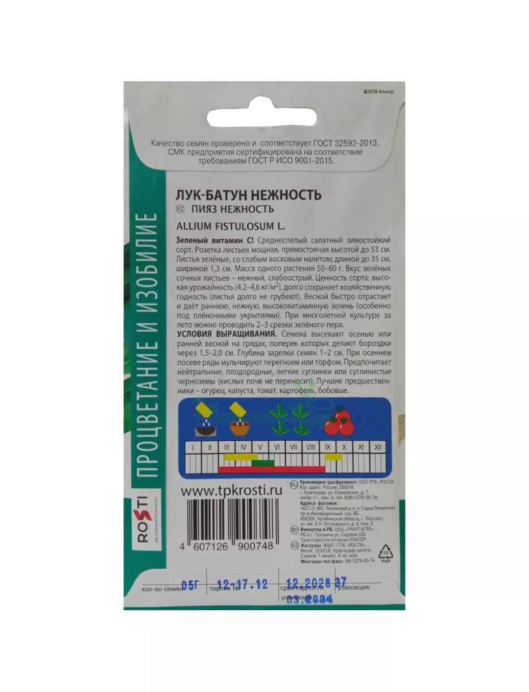 Среднеспелый салатный зимостойкий сорт. Розетка листьев мощная, прямостоячая, высотой до 53 см. Листья зелёные, со слабым восковым налётом, длиной до 35 см, шириной 1,3 см. Масса одного растения 50-60 г. Вкус зелёных сочных листьев - нежный, слабоострый. Ценность сорта: высокая урожайность (4,2-4,6 кг/м2), долго сохраняет хозяйственную годность (листья долго не грубеют). Весной быстро отрастает и даёт раннюю, нежную, высоковитаминную зелень (особенно под плёночными укрытиями). При многолетней культуре за лето можно проводить 2-3 срезки зелёного пера.