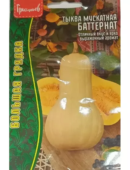 Баттернат имеет генетический материал, полученный от мускатной тыквы и диких африканских предков, что во многом влияет на его свойства. Этот сорт хорошо адаптировался в России и показал себя с хорошей стороны. Их целью было создание сорта мускатной тыквы, который можно выращивать в открытом грунте в Сибири и на Урале. Тыквины Баттернат отличаются не только приятным вкусом, но и оригинальным внешним видом. Своей грушевидной формой и цветом они напоминают гитару. Скорость созревания 80-90 суток и урожайность с одного куста 15 кг. Плоды имеют небольшой размер, что удобно для хранения. Многим также нравится ее уникальный запах, который не похож на тыквенный.