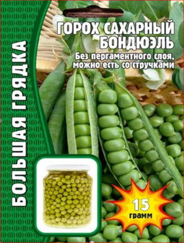 Популярный сорт сахарного гороха. Один из самых скороспелых-от восходов до технической спелости бобов 45-55 дней. Высота растения 60-70см. Длина стручка 9см. Горох сладкий, деликатесного вкуса. Используется в свежем виде, для заморозки и всех видов консервирования. Сорт отличается очень высокой стабильной урожайностью, устойчив к фузариозу.