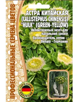 Неповторимые, привлекательные цветы зеленого цвета без лепестков с желто-белой сердцевиной, с хорошим ветвлением и обильным цветением. Высота 55-60 см. Астра с исключительной формой куста и экзотическим цветком. Идеальный сорт для срезки. Цветет с конца июля по сентябрь.