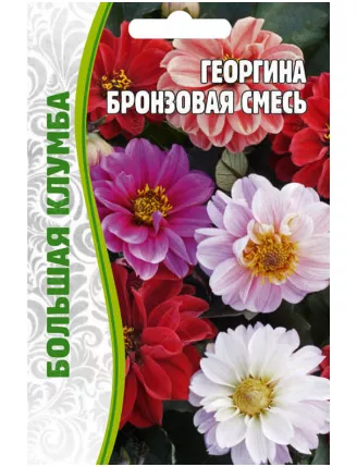 Георгина Бронзовая. Эта эффектная, красиво цветущая смесь будет радовать Вас не только своими крупными махровыми и полумахровыми цветками, но также и удивит Вас своей необычно окрашенной красновато-бронзовой листвой. Соцветия шаровидной формы, до 6-9 см в диаметре, разнообразных ярких окрасок. Краевые лепестки многочисленные, однотипные, короткоовальные, на концах свернуты в трубку, расположены концентрическими кругами. Они занимают почти все ложе соцветия и прикрывают немногочисленные трубчатые цветки. Применяется как в свободных композициях в декоративных контейнерах и вазонах, так и в групповых посадках - на переднем плане цветника, миксбордера. Великолепно смотрится в срезке.