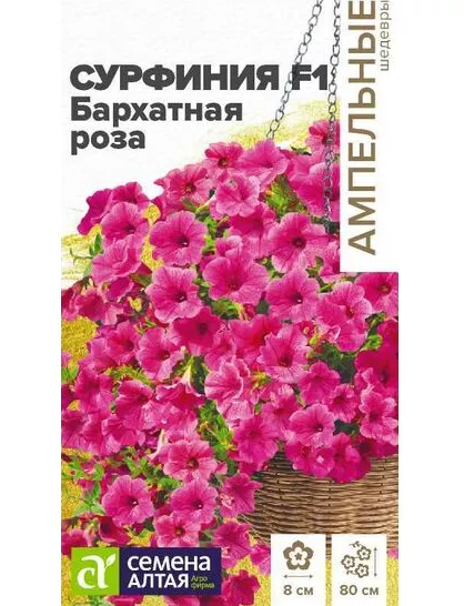 Бархатная роза - это однолетнее растение, которое имеет ампельную форму и поражает своим уникальным внешним видом. Её побеги достигают длины 80 сантиметров и легко ветвятся. Цветение начинается с мая и продолжается до сентября, после чего она восстанавливается и готово к новому циклу. Бутоны крупные до 8 см и пастельные розово-лососёвые тона. Сурфиния идеально подходит для подвесных контейнеров, оформление цветочных "деревьев", декорирования балконов. Она также может использоваться в качестве почвопокровной культуры.