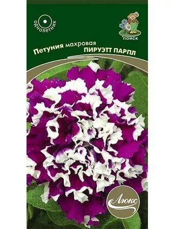 Великолепный гибрид с крупными махровыми цветами. Раскидистый кустик высотой 25-35см и диаметром 30см. Цветы крупные, красивые, диаметром 9-10см, фиолетово-белые. Обильно цветет с июня по сентябрь.