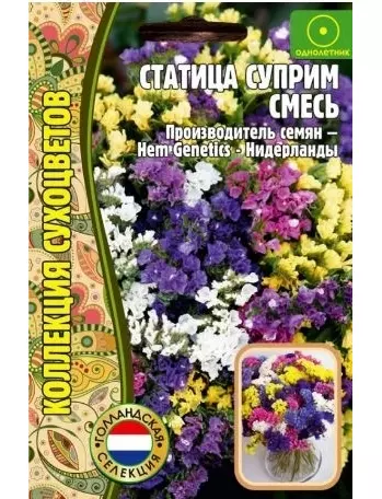 Один из самых популярных сухоцветов, лучший для зимних букетов. Растение высотой до 75 см. Высушенные цветки долго сохраняют свою окраску.