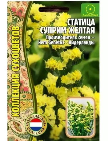 Один из самых популярных сухоцветов, лучший для зимних букетов. Растение высотой до 75 см. Высушенные цветки долго сохраняют свою окраску.