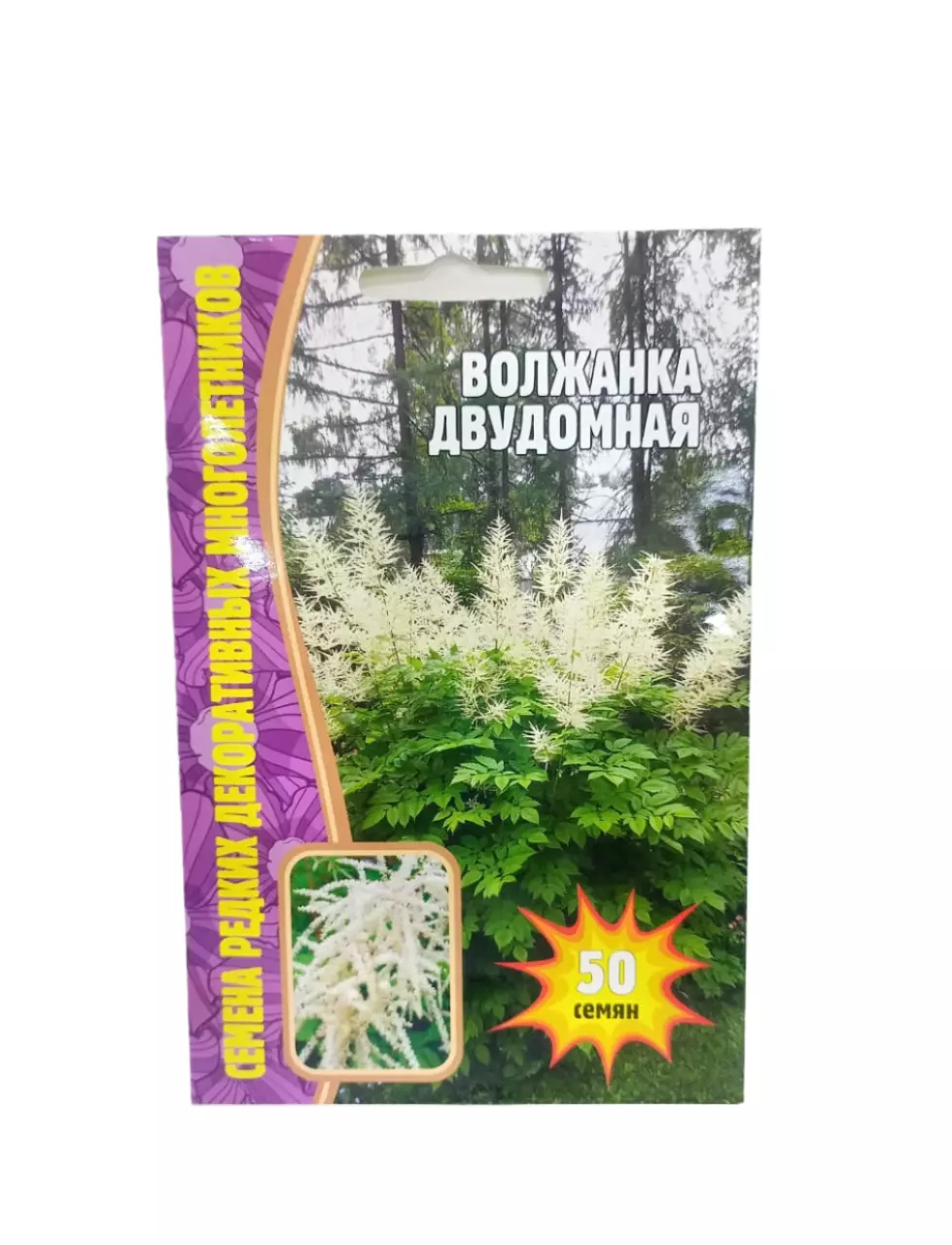 Двудомная волжанка вырастает до 2 м высотой. Отличается растение длинными ровными стеблями. При правильном уходе куст разрастается в диаметре до 1,5 м.. Листья у Волжанки ажурные, рваной формы, соцветия собрат ты в метелки белого от тенка длит той более 50 см. Осенью ее листья становятся насыщенного красного цвета и долгое время не опадают. Волжанка отлично переносит затенение и высокую влажность. Требования к грунту у неё минимальные - она любит легкие, хорошо дренируемые почвы.