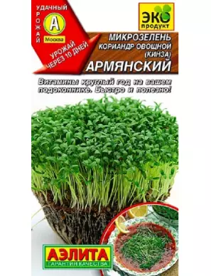Микрозелень кинзы (кориандра) – это неповторимый пряный аромат и удивительный вкус, который намного приятнее, чем у взрослых растений. При высоте 5-8 см микрозелень можно употреблять не только в срезанном виде, но и целиком, вместе с корешками, предварительно промыв от субстрата. Молодая кинза особенно хороша для витаминных салатов, супов и рыбных блюд, а в некоторых мясных блюдах – абсолютно незаменима.