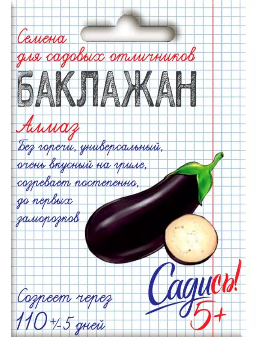 Среднеспелый сорт, период вегетации 109-149 дней. Растение компактное, высотой 45-56 см. Плод темно-фиолетовый, цилиндрический, длиной 14-17 см, массой 100-165 гр. Мякоть зеленоватая, плотная, без горечи. Вкусовые и технологические качества отличные. Отличается ранним и дружным созреванием плодов. Слабо поражается болезнями увядания.
