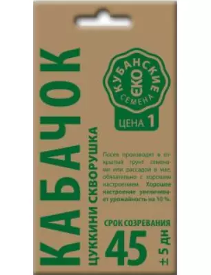 Раннеспелый, засухоустойчивый и холодоустойчивый сорт. Растение кустовое, компактное. Лист среднего размера, зеленый, среднерассеченный. Плод изогнуто-грушевидной формы, слаборебристый, темно-зеленый, с рисунком в виде крапинок, средней длины и диаметра. Масса плода 0,7-1,1 кг. Вкус хороший.