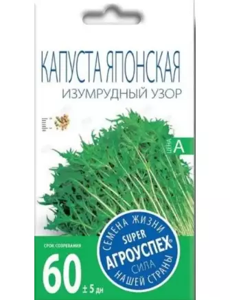 Среднеспелый сорт для выращивания в открытом грунте и пленочных теплицах. От всходов до начала хозяйственной годности б0-б5 дней. Розетка листьев слабоприподнятая высотой 33-35 см и диаметром 50-55 см. Лист среднего размера, темно-зеленый, лировидноперистый, рассеченный. Масса растения 0,8-1,2 кг. Вкус приятный с яблочным оттенком. Сорт высокоурожайный, устойчивый к стрелкованию, хорошо отрастающий после срезки.