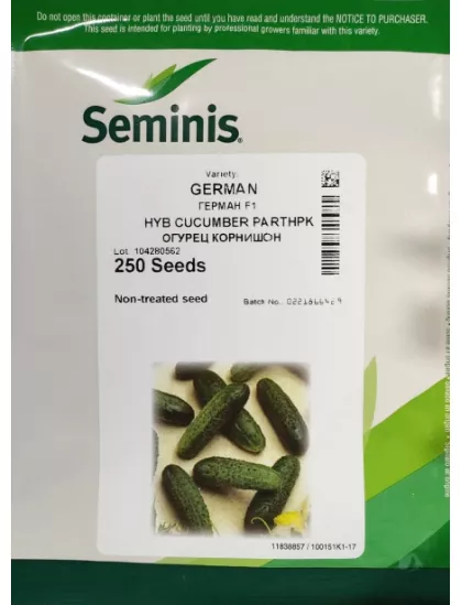 Суперранний (38-40 дней), высокоурожайный гибрид. Плоды крупнобугорчатые, однородной цилиндрической формы, длиной 9-11 см, без горечи. Рекомендуется для выращивания в открытом и защищенном грунте. Предназначен для потребления в свежем виде и засолке.