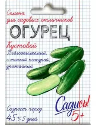 Пчёлоопыляемый гибрид. Раннеспелый. Для открытого грунта. В плодоношение вступает на 45-50 день после появления всходов. Растение кустовой формы, короткоплетистое (35-60 см). Плод удлиненно-яйцевидной формы, крупнобугорчатый, темно-зелёного цвета. Масса 100-120 г, длина 9-12 см. Устойчив к оливковой пятнистости, слабо поражается бактериозом и мучнистой росой. Рекомендуется для употребления в свежем виде, домашней кулинарии, консервирования и засола.