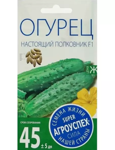 Скороспелый партенокарпический гибрид преимущественно женского типа цветения для весенних теплиц, парников, открытого грунта. Характеризуется дружной отдачей урожая и одновременным наливом большого количества плодов на растении. Ветвление среднее. Зеленцы ярко-зеленой окраски, бугорчатые белошипые, длиной 12-15 см. Вкусовые и засолочные качества высокие. Устойчив к оливковой пятнистости, мучнистой росе, толерантен к корневым гнилям.
