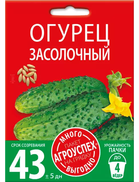 Раннеспелый, пчелоопыляемый сорт. Растение длинноплетистое, смешанного типа цветения. Зеленцы удлиненно-цилиндрические, крупно и редкобугорчатые, длиной 10-11 см, диаметром 3,7-3,9 см. Масса плода 100-120 г. Отличается стабильной урожайностью, высокими засолочными качествами. Идеален для засолки и консервирования.
