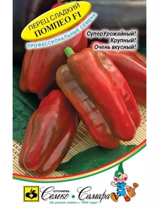 Среднеспелый (95-100 дн. от высадки рассады). Растение штамповое, среднерослое,с крепким стеблем, устойчив к полеганию. Плоды крупные, массой до 300 г, плотные, удлиненно-кубовидные, с длинной плодоножкой, глянцевые, четырехкамерные, с толщиной стенки до 10 мм, ароматные, сочные, сладкие. Окраска плода ярко-красная. Ценность гибрида: устойчивость к комплексу заболеваний, высокая урожайность, отличная завязываемость и великолепное качество плодов.