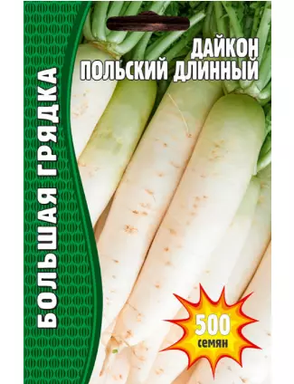 Сорт среднеспелый (60-70 дней), отличается высокими вкусовыми качествами. Образует корнеплод длиной 40-60 см и до 9 см в диаметре, с округлой головкой и белой кожурой, массой до 1,5 кг, который на 3/4 погружен в почву. Мякоть плотная, сочная и хрустящая, ярко-белого цвета. Сорт жаростойкий, устойчив к цветушности. Урожайность 10,6-12,6 кг/м . Дайкон полезен людям, страдающим заболеваниями сердца, почек, печени, подавляет вредную микрофлору кишечника. Используется в свежем, вареном, тушеном, соленом виде и для непродолжительного хранения.