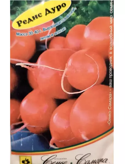 Новый, скороспелый сорт с дружным формированием выровненных, привлекательных корнеплодов. Удивит крупными корнеплодами с высокими технологическими качествами и составит достойную конкуренцию любому престижному сорту. Корнеплоды интенсивного красного цвета, гладкие, округлой формы с тоненьким хвостиком, массой 30-40 г. Мякоть плотная, хрустящая, очень нежная и сочная, удивительно вкусная, с повышенным содержанием эфирных масел и минеральных солей. Дуро - настоящая находка, так как его можно выращивать в течение всего сезона на почвах различного плодородия.
