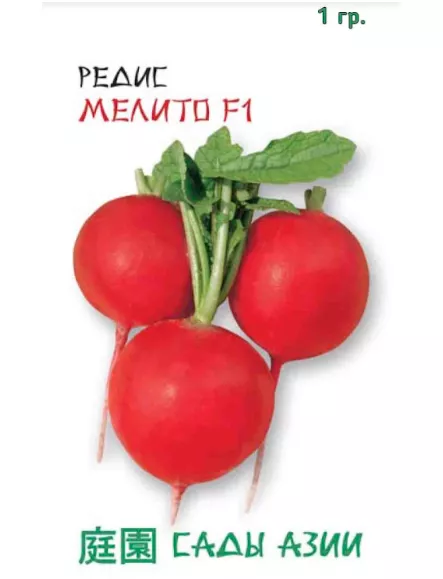 Ранний гибрид редиса для выращивания в открытом и закрытом грунте. Округлые ярко-красные плоды диаметром 3-4см с нежной, белой, очень сочной мякотью, долго не теряющей хрустящие свойства. От полных всходов до технической спелости плодов 20-25дней. Масса плода 30-35г. Схема посева 7х7см, глубина - 2-3 см. Устойчив к болезням и цветушности. Для потребления в свежем виде.