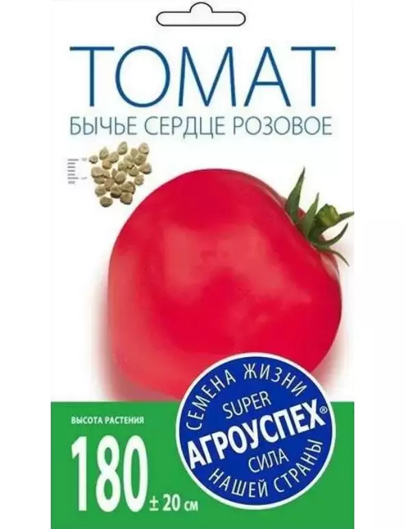 Сорт позднеспелый, высокоурожайный, для открытого грунта и пленочных теплиц. Растение высокорослое, высота главного стебля 160-200 см. Плоды крупные, розовые, при первом сборе массой до 400 г, при последующих до 100 г, мясистые, удлиненно-овальной формы (напоминают форму сердца), удивительно вкусные и сочные. Рекомендуется для употребления в свежем виде.