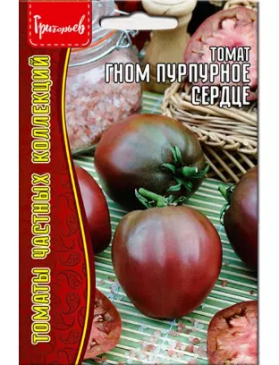 Томат Гном Пурпурное Сердце - это удачное сочетание низкорослости и крупноплодности. Это среднеспелый (период созревания 100-105 дней), детерминантный высотой до 50-70 см, не требуют пасынкования до первой кисти, предназначенный для выращивания в открытом грунте или под пленочным укрытием. Плоды сердцевидной формы, созревая становятся пурпурно-красными, весят от 100 до 200 граммов. Они мясистые и малосеменные, с очень хорошим вкусом и ароматом. Лучше всего подходят для употребления в свежем виде и приготовления соков. С одного куста можно собрать до 2 килограммов плодов. Гном Пурпурное Сердце отличается не только вкусовыми качествами, но и простотой в уходе, а также дружным плодоношением.