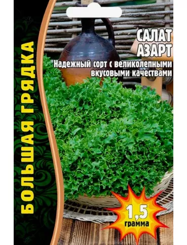 Салат “Азарт” - это салат с хрустящими листьями и яркими цветами. Он имеет насыщенный вкус и аромат, который напоминает смесь рукколы и шпината. Салат “Азарт” можно употреблять в свежем виде или использовать для приготовления бутербродов, салатов и закусок.