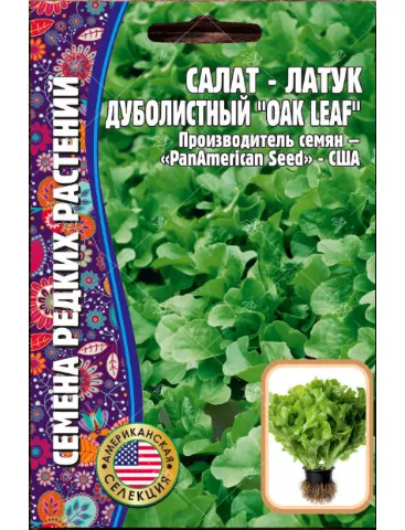 Раннеспелый листовой салат. От всходов до плодоношения 40-50 дней. Рекомендуется для выращивания в открытом и защищеном грунте. Розетка листьев средняя, диаметром 26-30 см и массой 100-150 гр. Листья светло-зеленые, имеют форму листьев дуба и великолепные вкусовые качества. Урожай убирают в течение всей вегетации, т.к. после срезки розетка листьев снова отрастает. Семена зеленого салата дуболистного "Oak leaf" проращивают на яркую и полезную зелень, которая обладает очищающими, диетическими, антиоксидантными и общеукрепляющими свойствами. Салат, выращенный из этих семян, имеет пышную розетку из глянцевых ярко-зеленых и слабоволокнистых листьев. У него нежный, приятный вкус и сочная текстура. Он прекрасно дополняет сэндвичи, салаты из свежих овощей, блюда из мяса или морепродуктов. Его подают в качестве легкого гарнира и добавляют в смузи. Листья этого сорта салата помогают выведению холестерина и снижению веса. Они эффективно укрепляют репродуктивную, кровеносную и нервную системы. Способствуют хорошему пищеварению и улучшают работу кишечника. Салат дуболистный "Oak leaf" содержит большое количество фолиевой кислоты. Также он богат клетчаткой, бета-каротином, витаминами А,С, В1, В6 и Е. Также в нем много минеральных веществ, среди которых кальций, железо, натрий, марганец и цинк. Посев. Производят с середины апреля (под пленочные укрытия) и до конца августа с интервалом 10-15 суток. Предпочитает плодородные почвы с нейтральной реакцией. Глубина заделки семян 1-2 см. Семена высеивают рядами 20-30 см.
